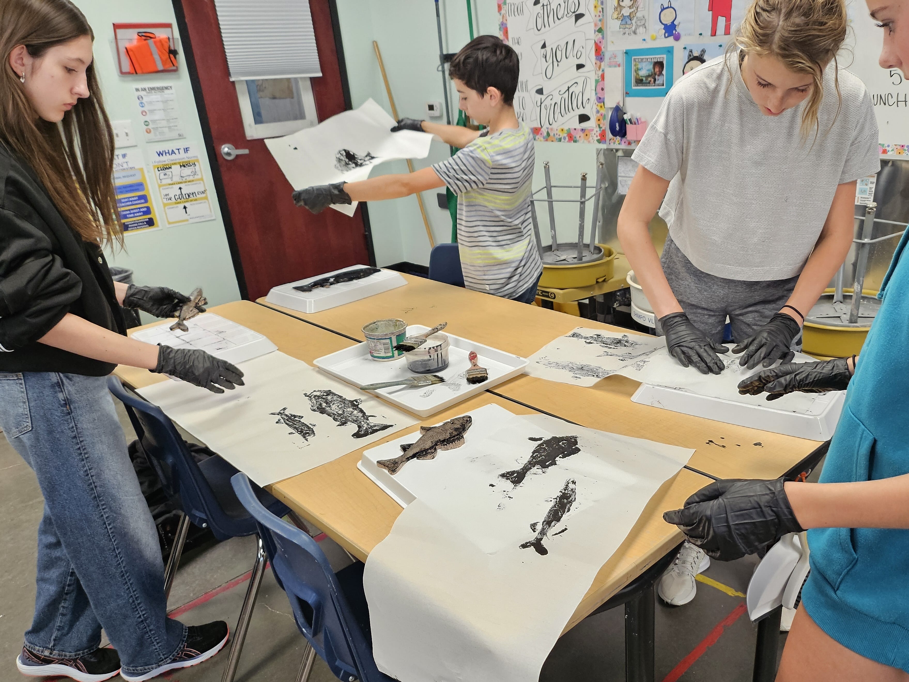 WSD eighth graders are learning a traditional Japanese printing technique called “gyotaku.” Invented by fishermen in the early 1800s, it was used both as a record of their catches and as an art form.
